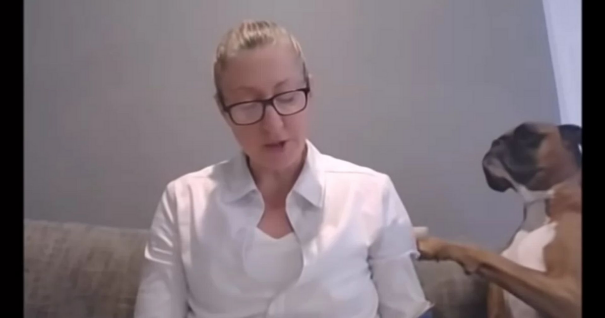 When Deanne tries to read a book to her students watching online, Archie the Boxer decided that he should get some attention from his owner as well.
