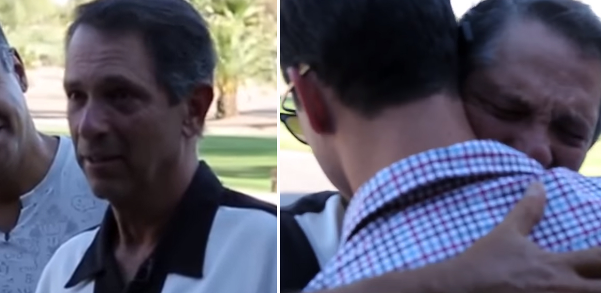The look on Larry’s face says everything— and when he pulls Aaron in for a hug, he can’t control the tears.