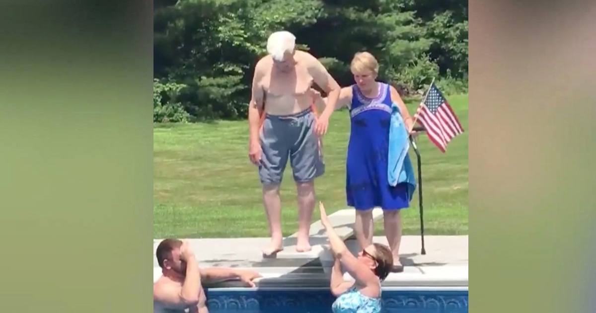 Michael, who has served in WWII and the Korean War, was enjoying the afternoon by the pool with his wife. The couple was there with family, and they soon noticed a little boy who was too scared to jump from the pool’s diving board.